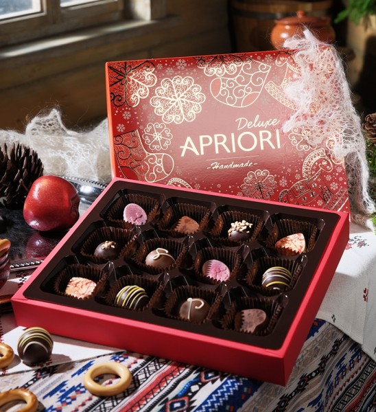 Ассорти из 12 конфет ручной работы в бесподобной праздничной упаковке «а-ля русс» - это удивительный набор, в котором белый, молочный и тёмный шоколад идеально гармонирует с изысканными нотками ликёра, нежным ореховым кремом, карамелью, кокосом и сочным ягоднофруктовым муссом. Такой набор- это приятный подарок, который дополнит волшебство новогодней ночи.